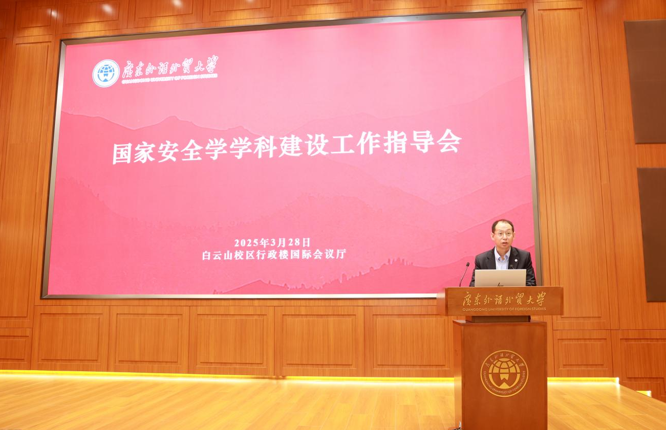 校党委常委、副校长申明浩做会议开幕式致辞。他对国务院国家安全学学科评议组两位重量级专家来访表示热烈欢迎和衷心感谢。他指出,当前广外国家安全学学科建设起步发展,得益于各位专家学者和社会各界的鼎力支持,为国家安全学学科建设提供真招实招,激发发展新动能,实现建设新突破。