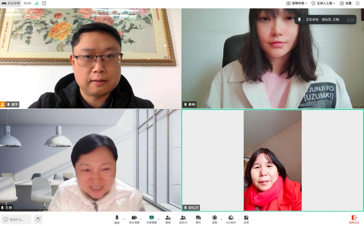 会议开始前,王艳对胡仙芝的指导表示衷心感谢,并介绍了研究院的发展成果和未来规划。随后,谢宇汇报了本次申报选题的背景和主要内容。胡仙芝肯定了谢宇选题的重要意义以及申报内容的完整度,同时指出申报书尚存在结构、域外文献较少等问题有待进一步优化。参会教师表示,通过本次指导交流会的学习,进一步明确了申报书存在的问题和改进方向,受益匪浅。